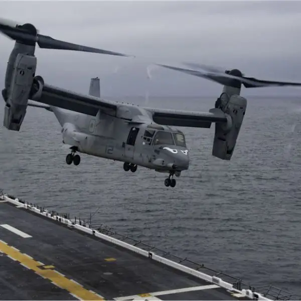 US Navy Amphibious assault ship USS Essex LHD 2 conducts flight operations with MV-22 aircraft