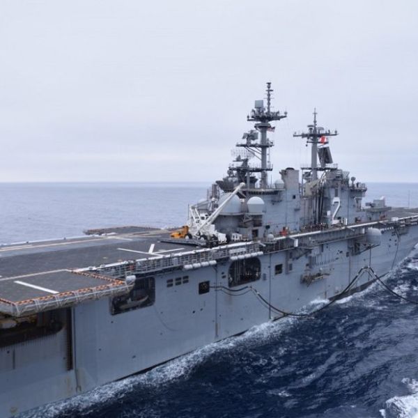 US Navy Matthew Perry cargo ship provides logistic support USS Essex Landing Helicopter Dock
