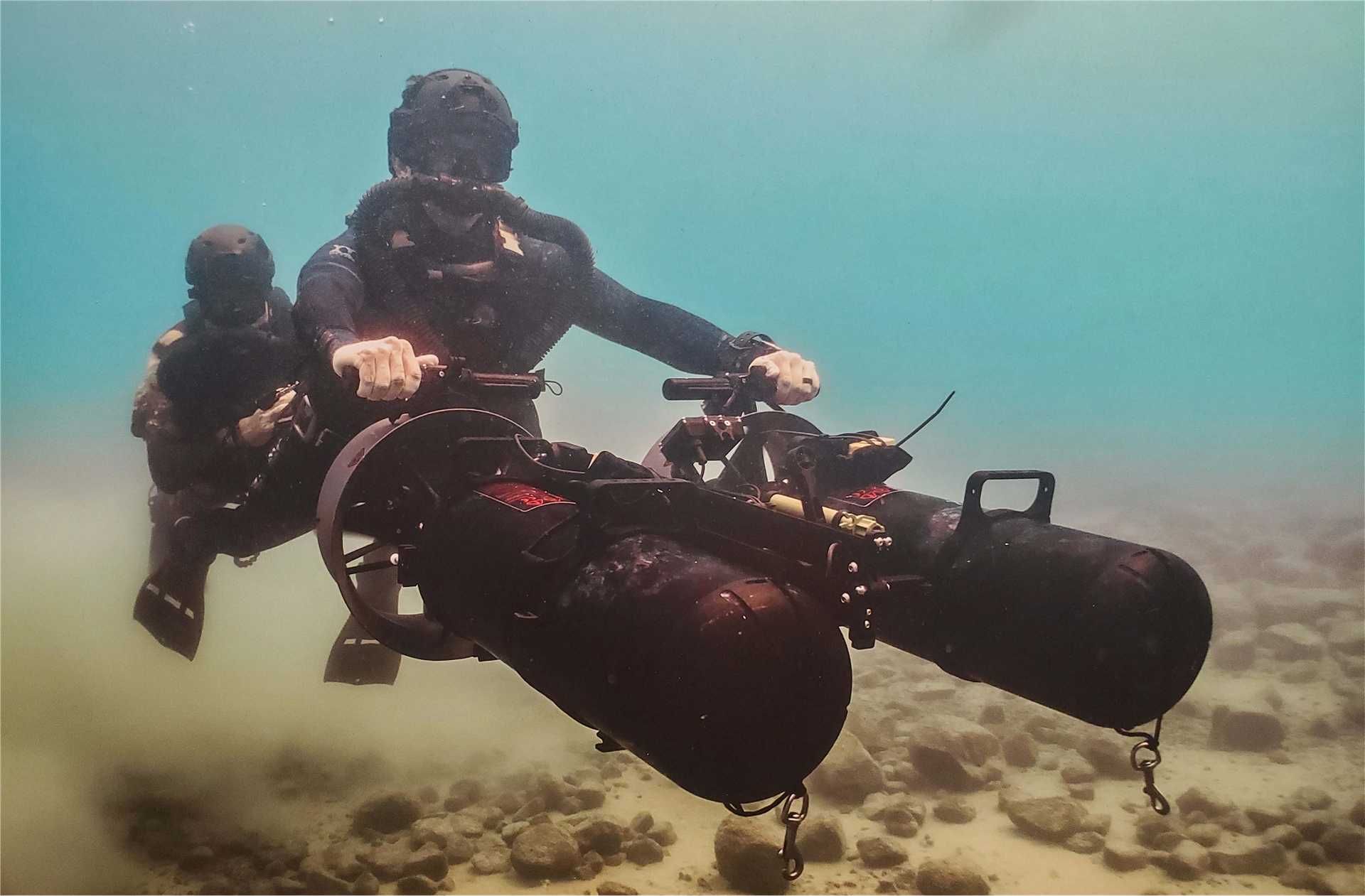 Two military divers operate a dual-frame Seacraft diver propulsion vehicle during maritime operations. The system supports both linear tow and independent maneuver modes, allowing rapid adaptation to mission-specific requirements. (Picture source: U.S. DoD)