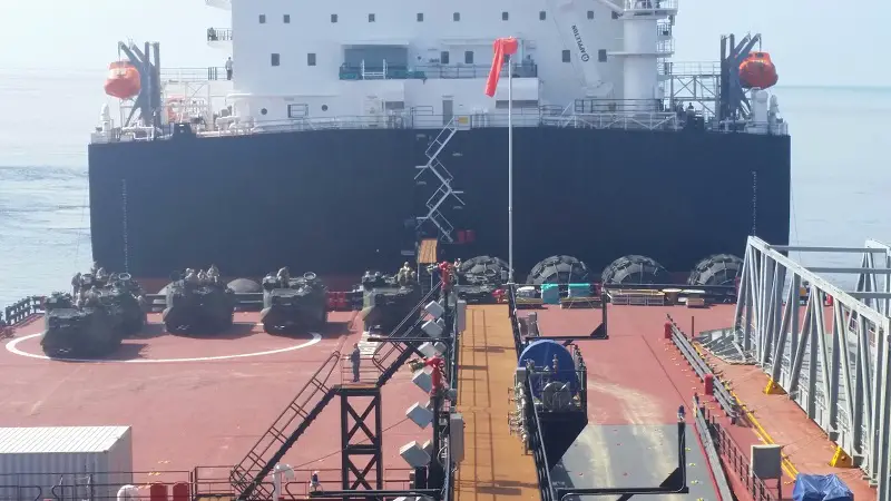 ships (LMSRs) onto landing craft air cushioned (LCAC) vehicles and transport