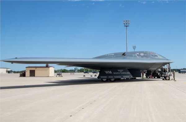 Strategic stealth heavy bomber with nuclear and conventional precision-strike capability.