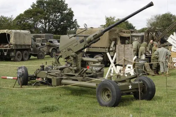 The M1 anti-aircraft gun is the single barrel 40mm Bofors which was in service in the United States Army during the Secon...