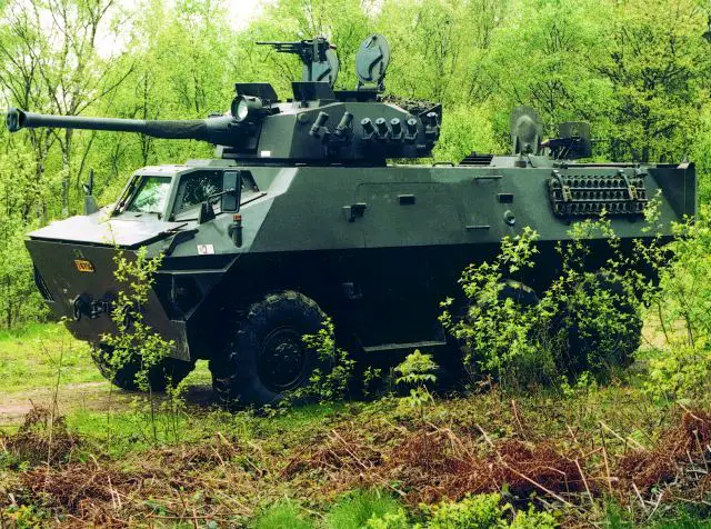 Un canon de 90 mm, ou de 20 mm, et une mitrailleuse coaxiale de 7,62 sont montée dans une tourelle biplace produite par la société belge CMI Defence.