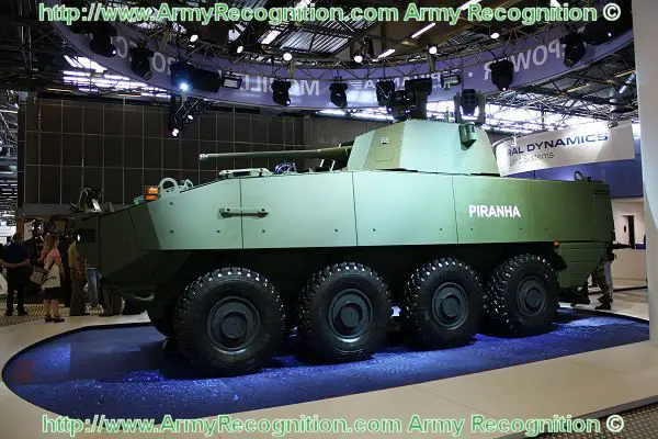 The Piranha V was developed by the Swiss subsidiary company of General Dynamics European Land Systems. The vehicle was unveiled during the International Defense Exhibition in Paris, Eurosatory 2010.