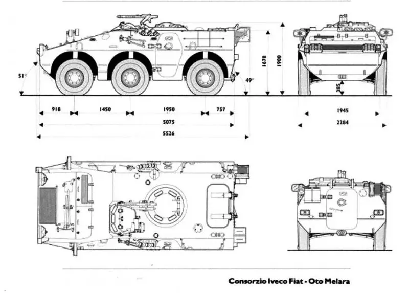 - Prototype with Oto Melara 12.7 mm Remote Turret: Features under-armor weapon control