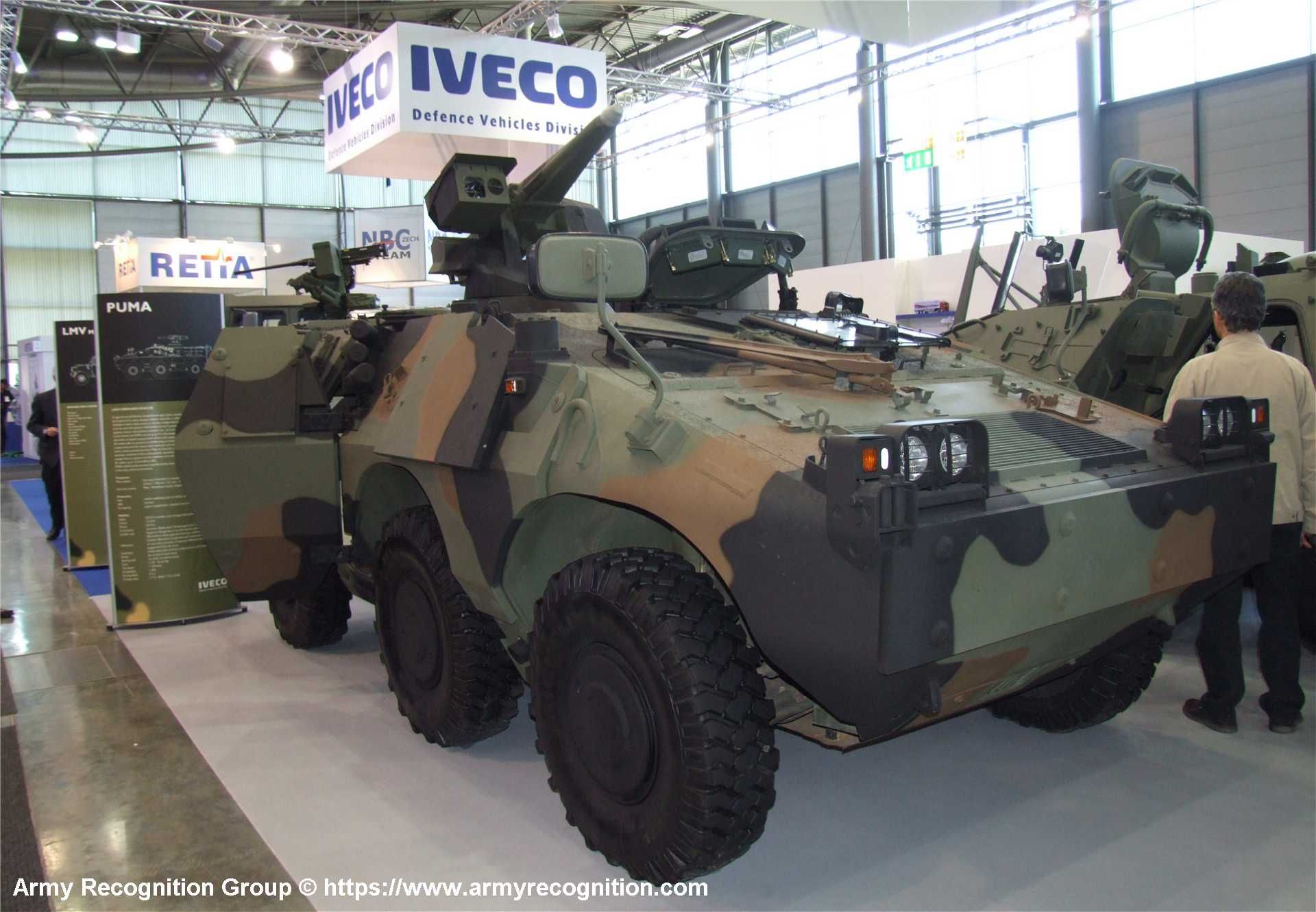 The Puma 6x6 is a wheeled armored personnel carrier (APC) designed to offer a balance of mobility, protection, and modular mission adaptability for light and mechanized forces. Developed by Iveco Defence Vehicles of Italy, the Puma 6x6 forms part of a broader family of light armored vehicles that also includes a 4x4 version. The Puma 6x6 has been integrated into the Italian Army's light infantry, airborne, and amphibious regiments, where its multi-role capability and off-road performance make it suitable for diverse military operations, including reconnaissance, troop transport, and peacekeeping missions.