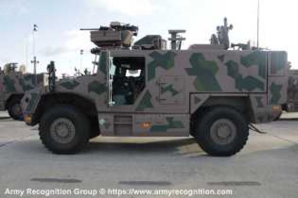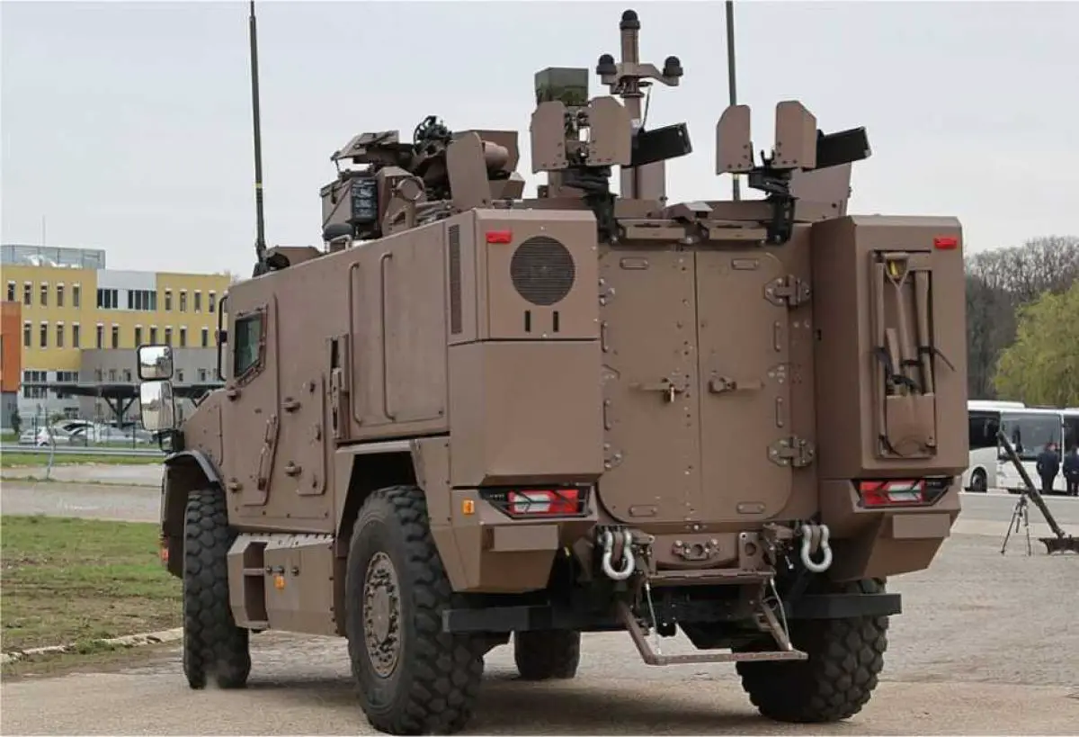 The Serval VBMR-L is equipped with a remote-controlled cupola assembly that supports a variety of weapon configurations depending on the mission. The primary armament can include a 12.7mm heavy machine gun and smoke grenade launcher, a 7.62mm machine gun, or a 40mm grenade launcher, also combined with a smoke grenade launcher for self-defense or offensive action. This versatile armament setup allows the vehicle to effectively engage a range of targets, from infantry to lightly armored vehicles, while providing the option of employing smoke grenades for screening or suppression. In addition to the primary weapon, the Serval is also equipped with a self-defense machine gun, which can be a 5.56mm or 7.62mm caliber weapon mounted at the rear of the roof, depending on the variant. These capabilities ensure that the vehicle is well-equipped for both combat situations and defensive actions.