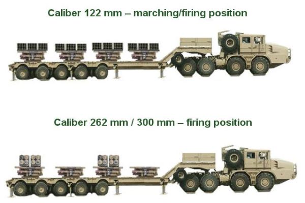 Dominator M2/12 MLRS multi-caliber multiple launch rocket system