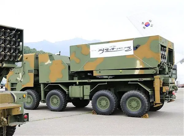 The Chunmoo also called K239 K-MLRS is a multi-caliber launch rocket system designed and manufactured by the South Korean Company Hanwha Corporation. It is a new generation of artillery weapons able to fire different calibers of rockets. The South Korean government awarded a development contract to Hanwha in 2009, and the development of the Chunmoo was completed in 2013. It entered into service with the South Korean Army (ROK) in 2014.