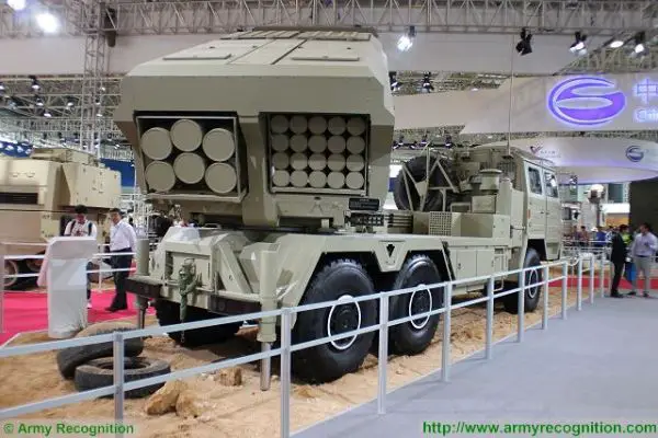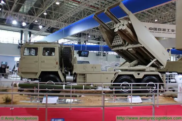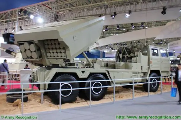 The SR5 is a Guided Multiple Launch Rocket System (GMLRS) designed and manufactured in China by the Company NORINCO (China North Industries Corporation). The MLRS is able to fire different calibers of guided and unguided rockets and launches loitering munitions. It is a universal launching platform adopting such technologies as canister launching, automatic loading, and common-frame rocket launching. Featuring intensive and accurate firepower, a high level of automation, rapid reaction and excellent maneuverability, the weapon can realize common-frame launching of 122mm and 220mm guided/unguided rockets to achieve a highly efficient combination of surface suppression and precision strikes. The SR-5 GMLRS was unveiled for the first time to the public with a scale model shown at the Eurosatory defense exhibition in June 2012. The vehicle is now in service in the Chinese army since 2013. Venezuela has ordered a total of 18 SR5s in 2012 and 6 vehicles were delivered in 2014 to Venezuelan Armed Forces.