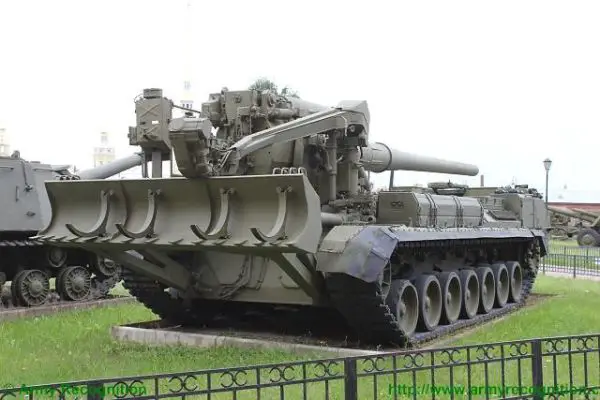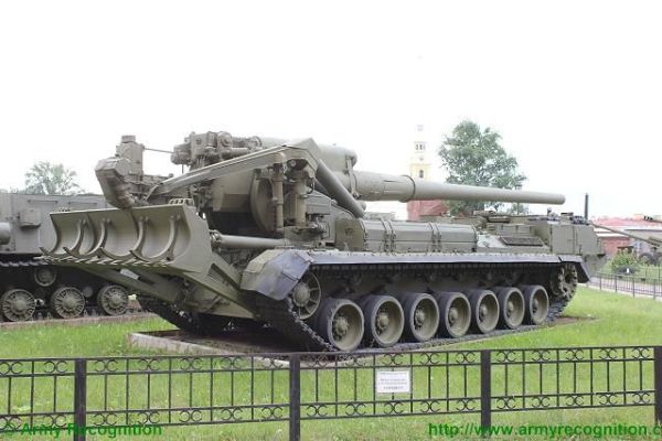 The 2S7 Pion M-1975 (Soviet name SO-203) is a tracked 203mm self-propelled gun designed and manufactured by the Russian defense industry. The 2S7 chassis was developed by the Kirov Factory under the designation of the Obiekt 216, with the gun and mount being developed by the Barrikady plant. The vehicle enters into service with the Russian army in 1975, and it has been referred to as the M-1975 as this is the year when the system was first observed. It is estimated that well over 1,000 of these systems have been completed, although the Russian Federation and many Eastern European countries have also used this vehicle. The 2s7 is still in service with the Russian army reserve forces and other countries in East Europe, the Middle East, and Africa, but production is stopped and it is no longer being marketed. The 2S7 was also used by the Ukrainian armed forces during the conflict of the Pro-Russian rebels. The 2S7 takes 5 to 6 minutes to come into action and 3 to 5 minutes to come out of action. The 2S7M is a modernized version of the previous 2S7 using the same 203mm cannon but with many new improvements.