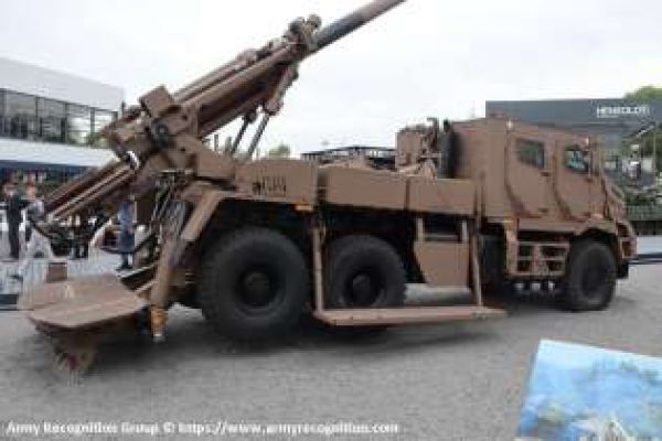The CAESAR Mk 2 is typically based on a Renault Sherpa 10 military truck chassis. However, it can be adapted to other chassis configurations based on customer requirements, providing flexibility for different operational needs. The vehicle is powered by a 460 hp diesel engine, a significant upgrade from the 215 hp engine of the original model. This increase in power grants the CAESAR Mk 2 enhanced tactical mobility, allowing it to maneuver more effectively in difficult terrain and avoid enemy retaliatory actions, a key feature in modern "shoot-and-scoot" artillery tactics.