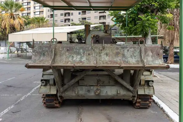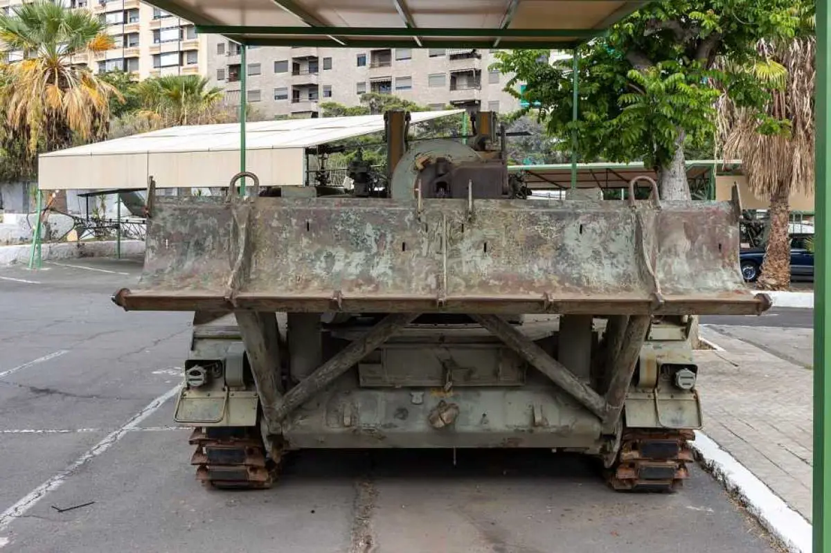 The rear section of the vehicle consists of an open-topped fighting compartment where the main 203 mm howitzer is mounted. This area is manned by the gun commander, gunner, and two loaders. These crew members are exposed to the environment and battlefield threats, relying on the vehicle’s range and tactical positioning rather than physical protection. The open design facilitates fast access to the weapon and ease of operation for large, separate-loading ammunition.