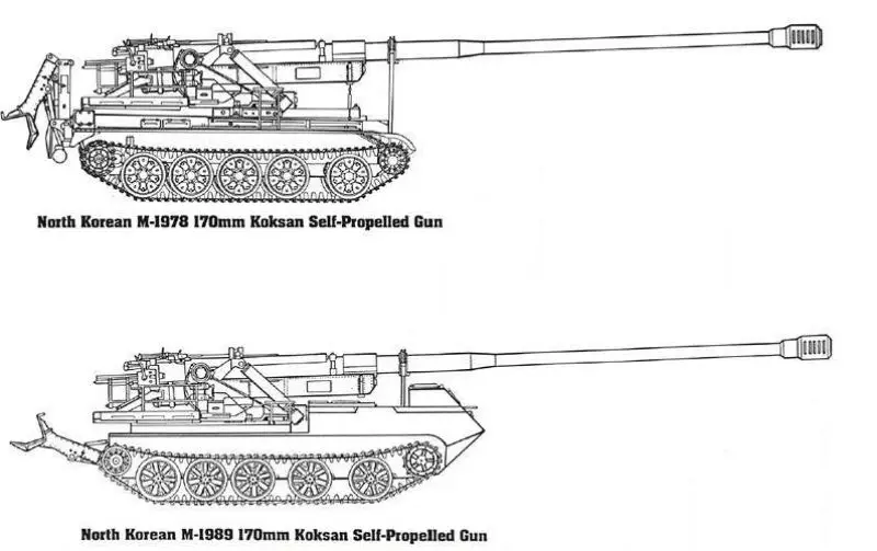 -M1978 Koksan: Earlier version using the same 170mm gun but mounted on the tracked chassis of a Chinese-made Type 59 MBT Main Battle Tank