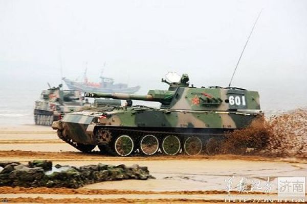 Standard equipment of the PLZ-89 / Type 89 122mm self-propelled howitzer includes NBC (Nuclear, Biological, Chemical) protection system, night vision equipment, fire detection and suppression system and an onboard, computerized fire-control system. Observation devices are provided in either side of the turret and the indirect fire sight is mounted in the roof on the left side. The PLZ 89 is fully amphibious using a flotation kit mounted on each side of the hull.