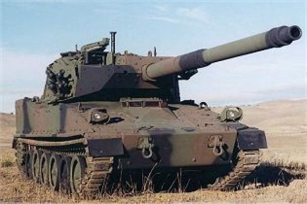 Main armament of the M8 AGS consists of one 105 mm M35 gun is fully stabilised in both axes with an elevation of +20º and a depression of -10º through a frontal 270º arc. Turret traverse is a full 360º. Turret traverse and weapon elevation are hydraulic with manual controls for emergency use. The M8 is fitted with an automatic ammunition loader located in the left side of the turret with 21 rounds of 105mm ready to fire. With that type of system, the vehicle has a rate of fire of 12 rounds per minute. The gun can fire a full range of ammunition as APFSDS-T (Armor Piercing, Fin Stabilized, Discarding Sabot - Tracer), APERS (anti-personnel ammunition), WP (White phosphorus), HEAT (High explosive anti-tank) and HESH (High-explosive squash head). A 7.62mm machine gun is mounted to the right side of the main armament and one 12.7mm heavy machine gun is mounted on the commander's cupola. A bank of eight grenade launchers is mounted on each side at the front of the turret.