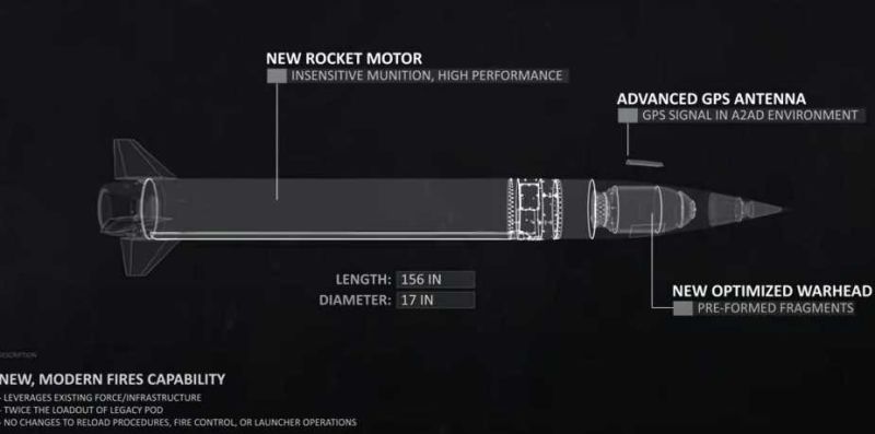 The PrSM (Precision Strike Missile) features a clean, cylindrical design, measuring approximately 4 meters in length and 430 mm in diameter, housed in a sealed, launch-ready pod compatible with both the M142 HIMARS and the M270A2 MLRS. Each launcher pod holds two missiles, doubling the load-out capacity when compared to the ATACMS system, which carried one missile per pod. This dual-load configuration significantly increases the strike volume per platform, especially in rapid, sequential launch operations.