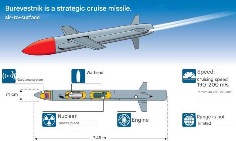 The missile was first publicly acknowledged by Russian President Vladimir Putin during his March 2018 state-of-the-nation address, where it was introduced as one of six new strategic weapon systems intended to ensure Russia’s deterrence capability in the face of evolving Western missile defense networks. Its defining characteristic is the incorporation of a compact nuclear reactor powering an air-breathing engine, enabling sustained low-altitude flight and effectively unlimited range.