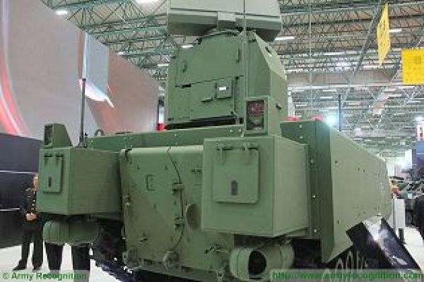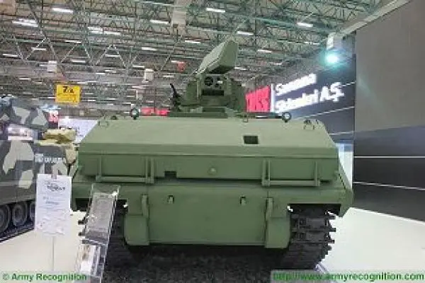 The Korkut Command and Control Radar vehicle is fitted with a small unmanned turret mounted on the center of the hull which includes a 3-D search radar for acquisition and tracking of air targets. The 3D radar can detect a target at a maximum distance of 70 km. The antenna unit incorporates a primary radar antenna with IFF (Friend or Foe) identification system. It enables the vehicle to identify aircraft, vehicles or forces as friendly and to determine their bearing and range from the interrogator. Command and control functions and interfaces can be implemented for other air defense systems. One 7.62mm machine gun is mounted to the commander hatch for the self-protection of the vehicle.