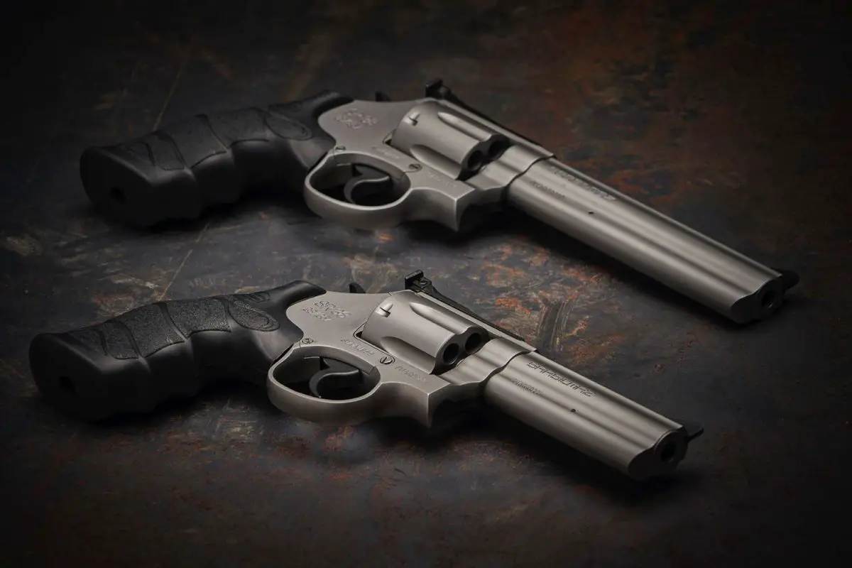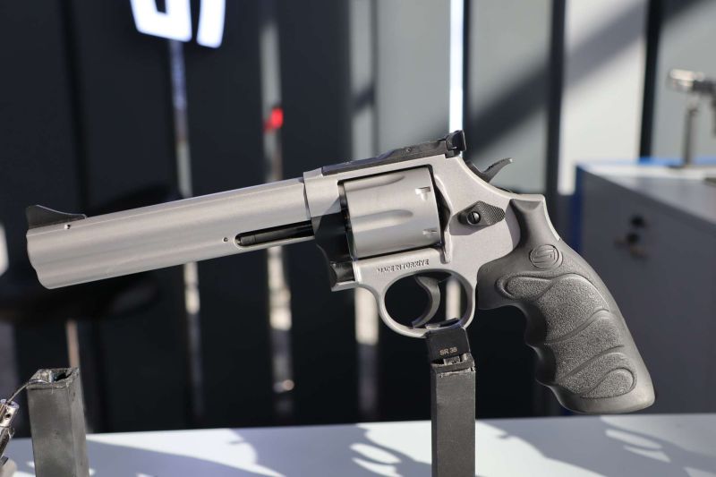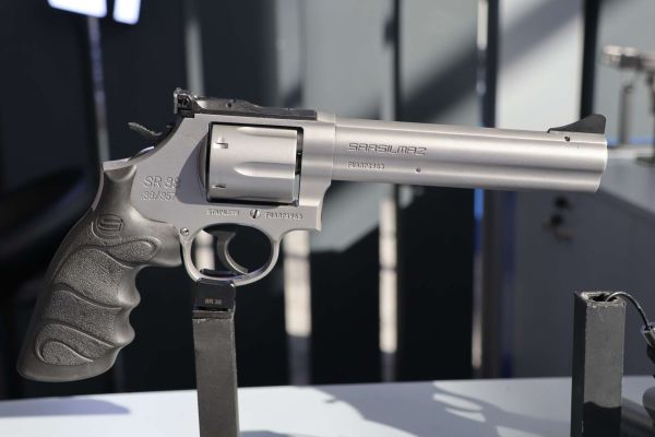 Designed with a frame, barrel, and cylinder made of alloy forged steel, the SR38 revolver aims to combine robustness and visual finesse to appeal to an audience that favors a more classic style of firearms. Its single and double-action configuration is supported by an external trigger allowing for precise shooting in single-action mode, and regular firing in double-action mode. Users will appreciate the surprisingly light trigger pull in single-action mode and the consistency in double-action. The SR38 is available with barrels of different lengths. This model is equipped with adjustable sights at the front and rear, allowing for precise and easily modifiable aiming for various shooting situations. The ergonomic grip made of synthetic material features finger grooves. The Turkish revolver has a unique drop safety and a hammer block. Available in black chrome and matte stainless steel finishes, he is manufactured in Türkiye by Sarsilmaz, but the design comes from the United States as the SR38 is a clone of the Smith & Wesson 686.