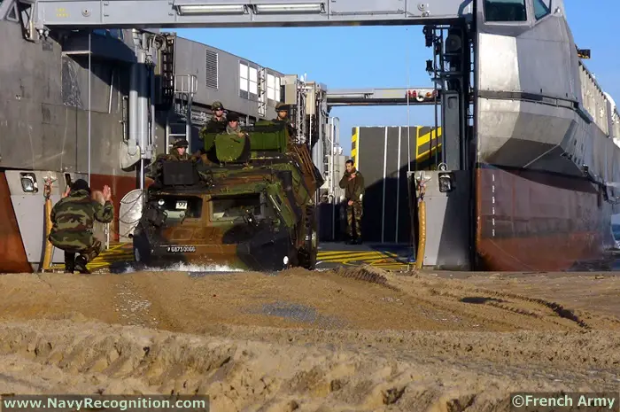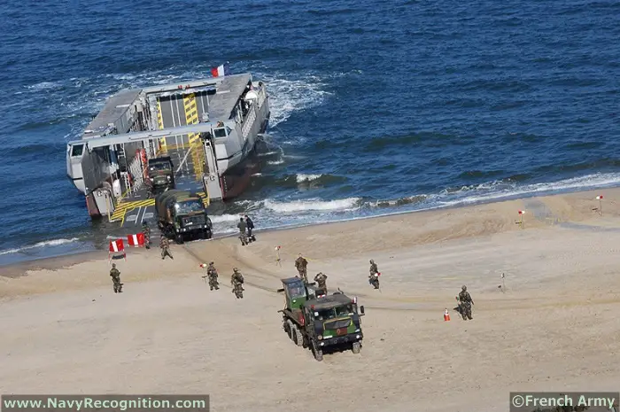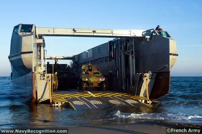 The L-CAT® Ship-to-Shore, manufactured by CNIM, a French company, is a fast and innovative landing craft. With its Ro-Ro design integrating a mobile loading platform in a catamaran hull, the L-CAT® Ship-to-Shore can unload men, armored vehicles and equipment in the absence of port facilities and in shallow water.