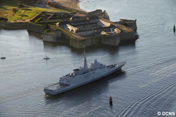 FREMM Aquitaine leaves DCNS shipyard in Lorient to join her homeport: French Naval Base in Brest