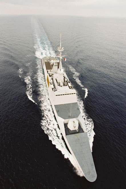 Modular design. Shape of hull and superstructures designed to lower radar cross section. Extensive use of alloy, reinforced plastic and kevlar to increase stealth. Provisions for installation of 16 Aster 15 missiles in VLS cells.
