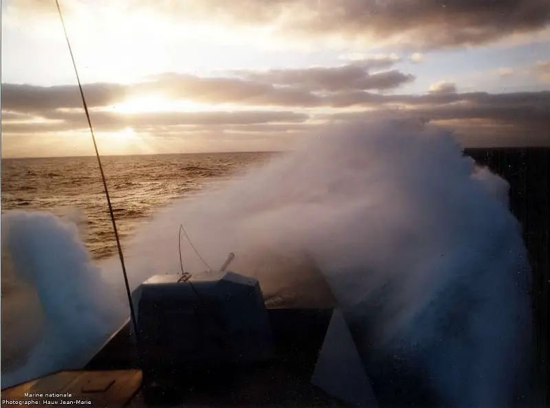 The La Fayette Class incorporates a number of stealth features – the sides of the vessel are sloped at 10° to minimize radar cross section, surfaces are made of alloy, reinforced plastic and kevlar. The profiles of external features have been reduced.