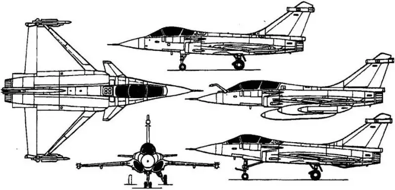 The Dassault Rafale M Marine retains the distinctive delta wing and foreplane canard configuration characteristic of the Rafale series, a design choice that offers high agility, aerodynamic efficiency, and superior control at both high and low speeds. Its airframe, measuring 15.27 m in overall length, with a wingspan of 10.8 m and a height of 5.34 m, is extensively reinforced to meet the demanding environment of carrier operations. With an empty weight of approximately 11 t, the Rafale M combines robust structural integrity with optimized aerodynamic performance.