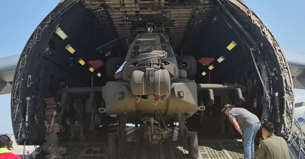 British Army receives three new Apache AH-64E attack helicopters from United States.