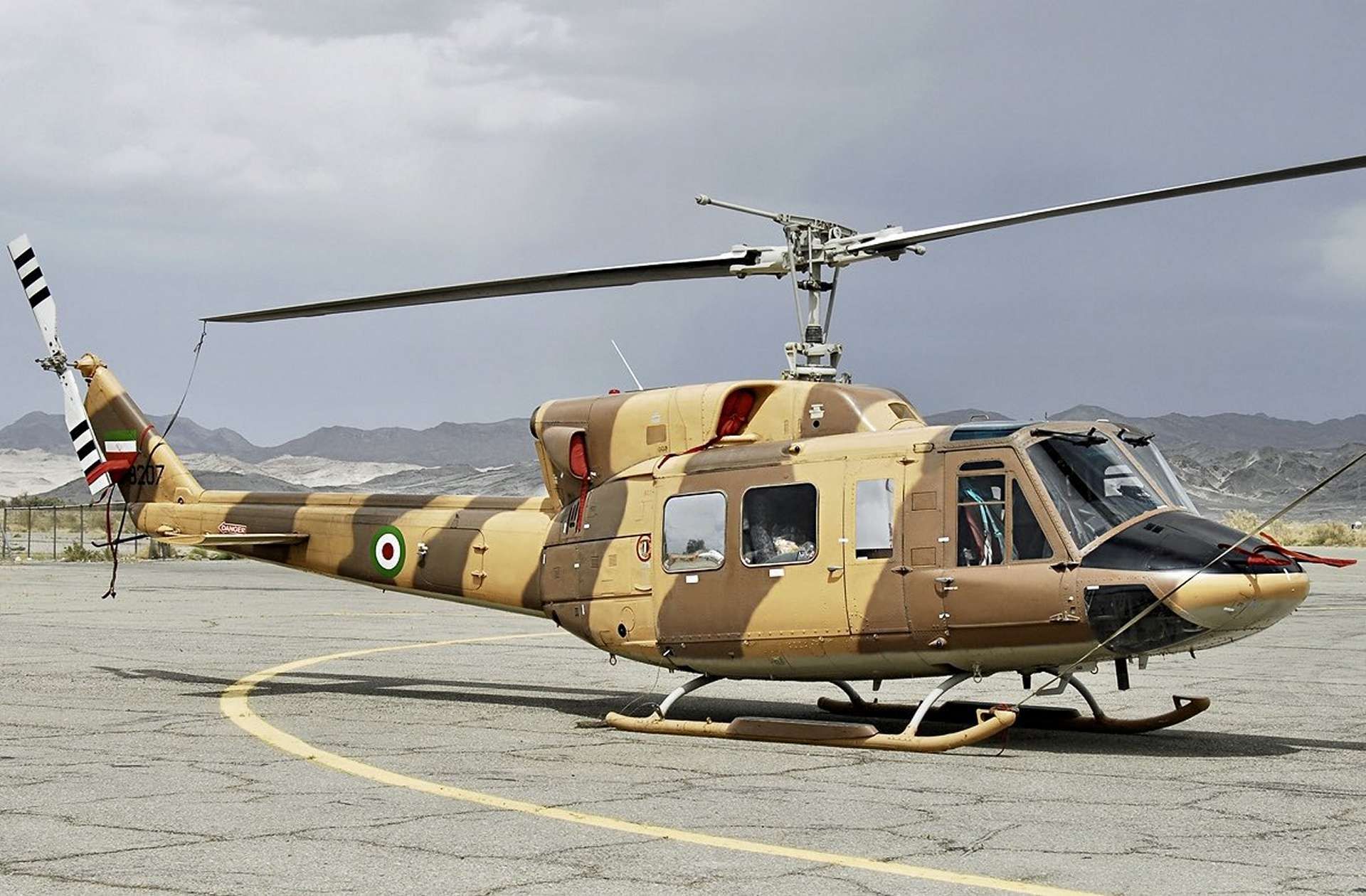 The Bell 212 helicopter, with registration 6-9207 and manufacturer serial number 35071, had previously been used by the Iranian Air Force, as shown in this image depicting its earlier camouflage. (Picture source: Twitter/The Stratcom Bureau)