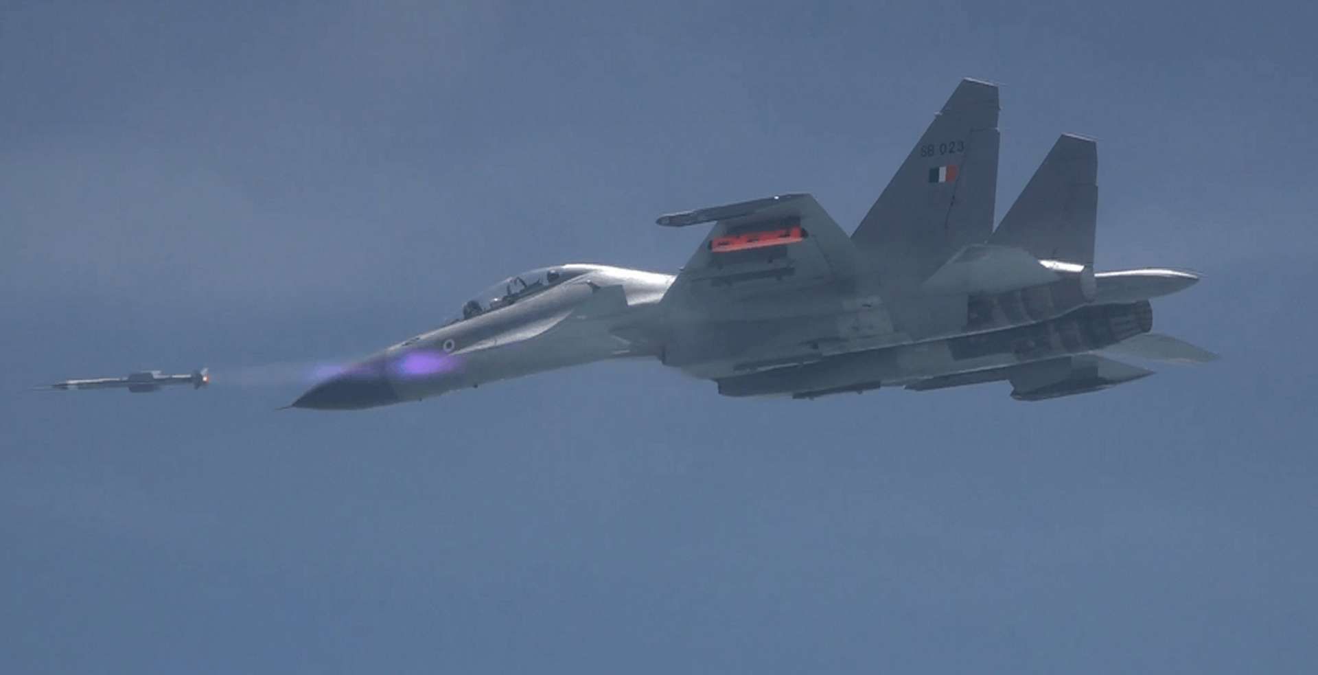 The missile is designed to be launched from various aircraft platforms, including the Sukhoi Su-30MKI, MiG-29K, and HAL Tejas Mk.1/1A, with maximum range achieved from higher altitudes. (Picture source: Indian MoD)