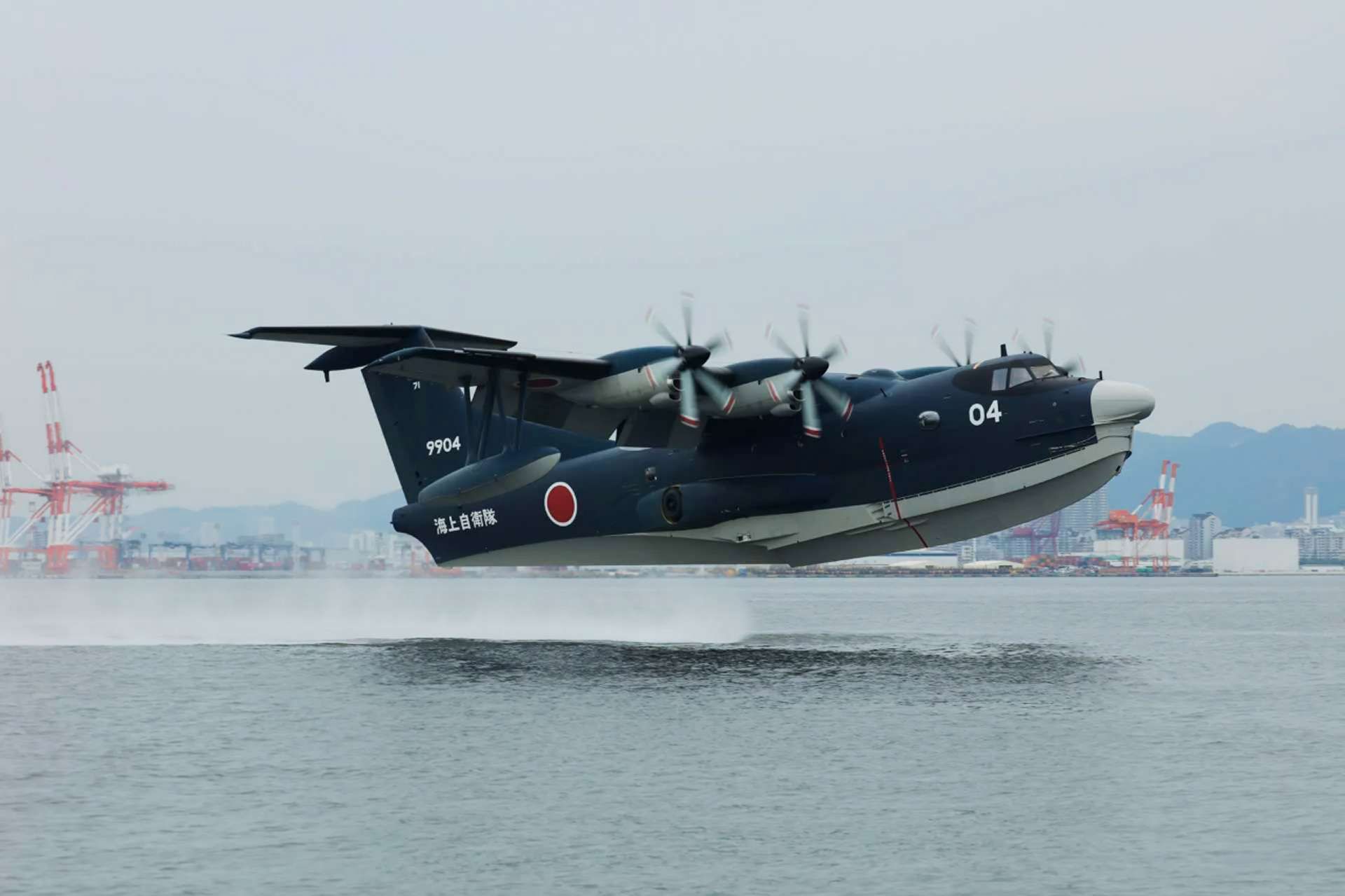 Japanese Navy welcomes back ShinMaywa US-2 amphibious aircraft for maritime rescue missions.