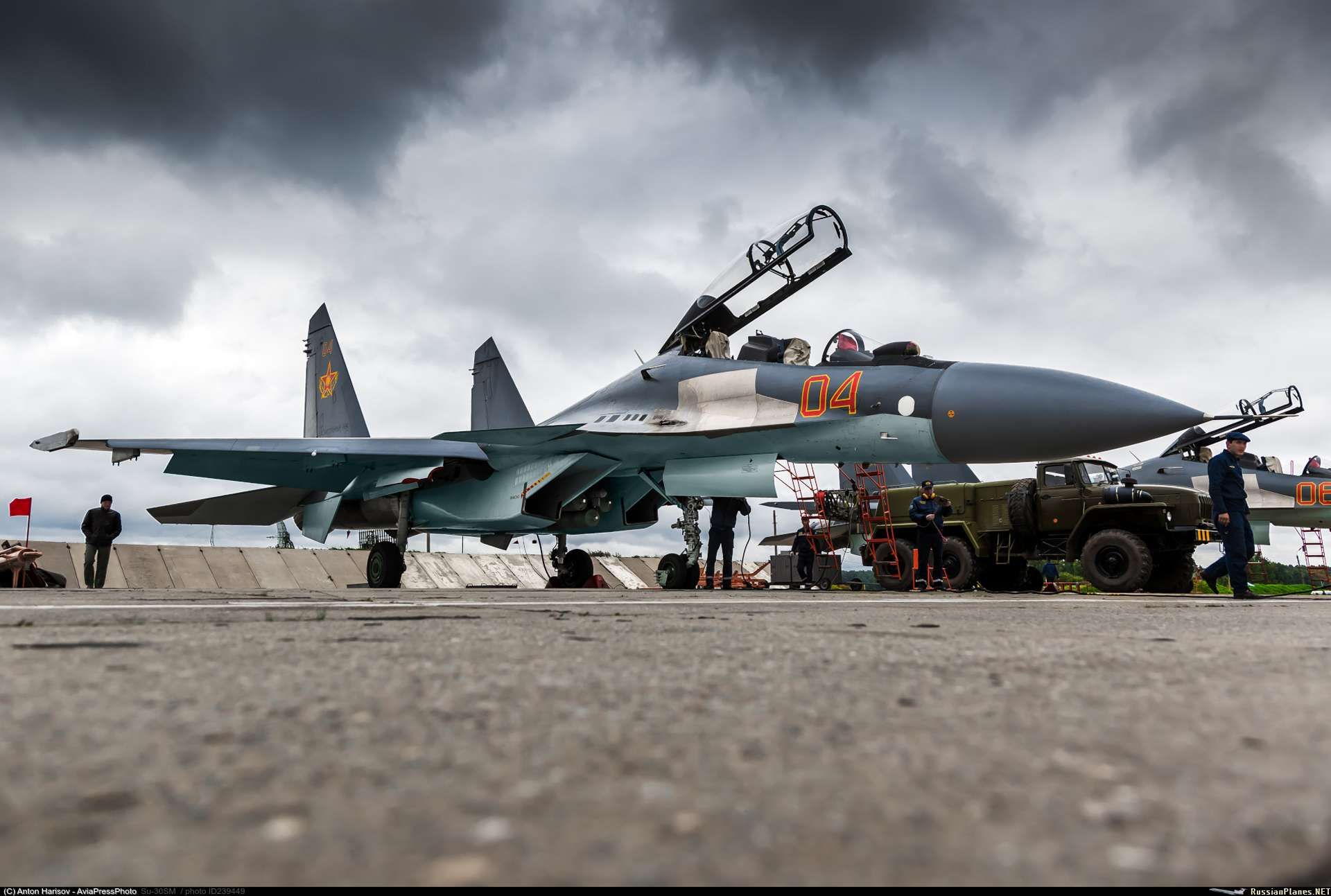 The SU-30SM has twelve hardpoints that can carry guided missiles, bombs, and rockets, is armed with a 30-mm GSh-30-1 cannon, and can carry up to 8,000 kg of combat load. (Picture source: RussianPlanes.net/Ilya the Nightingale)