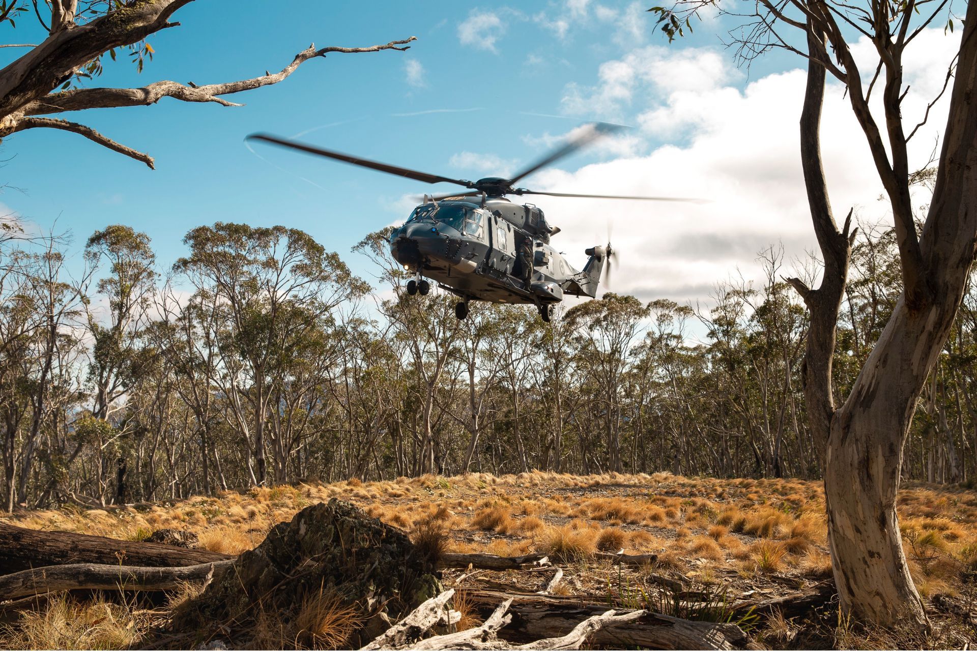 A Royal New Zealand Air Force NH90 helicopter lands to deploy soldiers from Australia’s 7th Battalion for land clearing and fuel reduction on Brindabella Mountain, west of Canberra, on 20 January 2020 (Picture source: Australian MoD)
