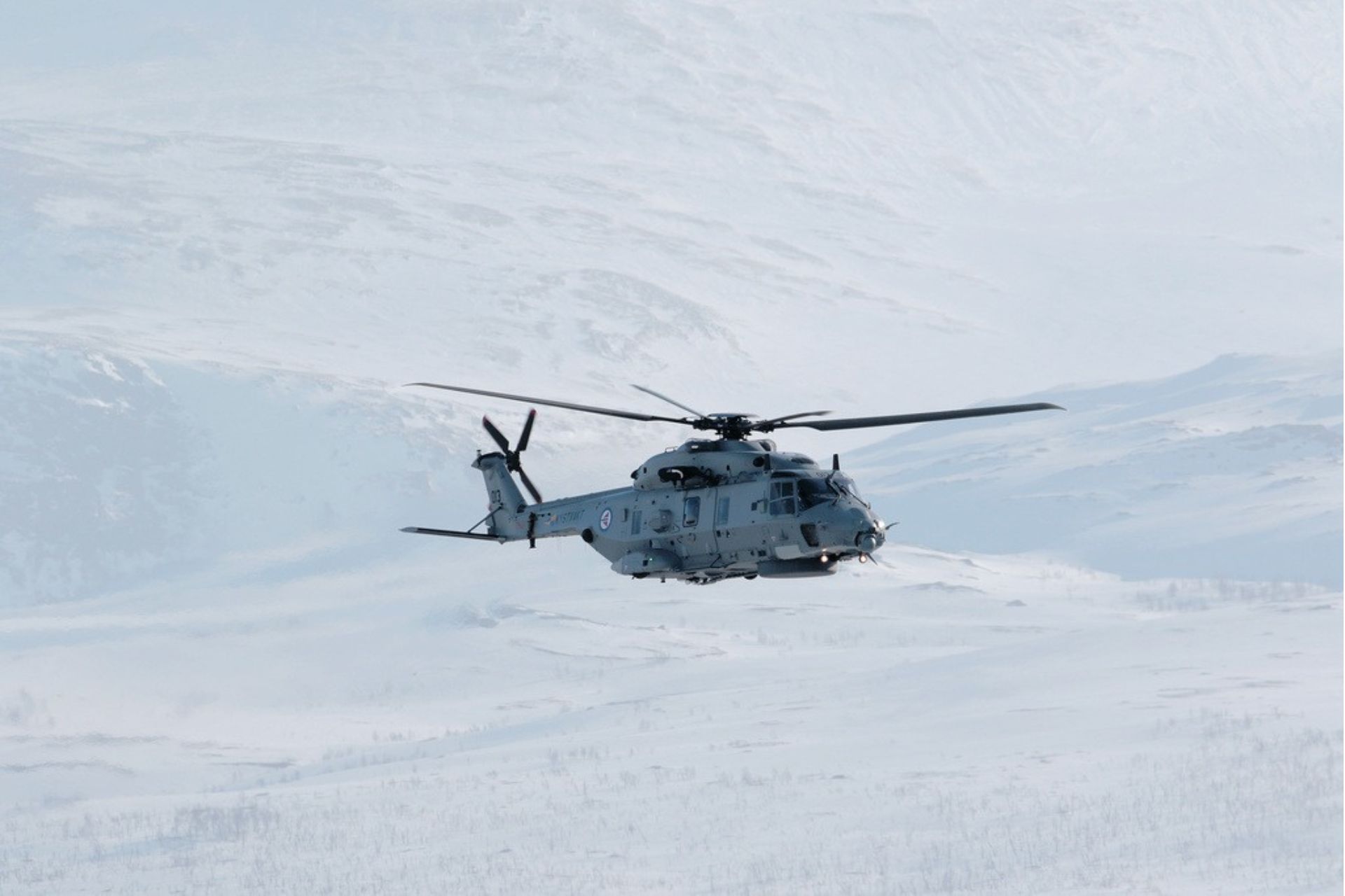 An NH-90 helicopter taking off from Bardufoss Air Station during the winter exercise Cold Response 2022 (Picture source: Forsvaret)