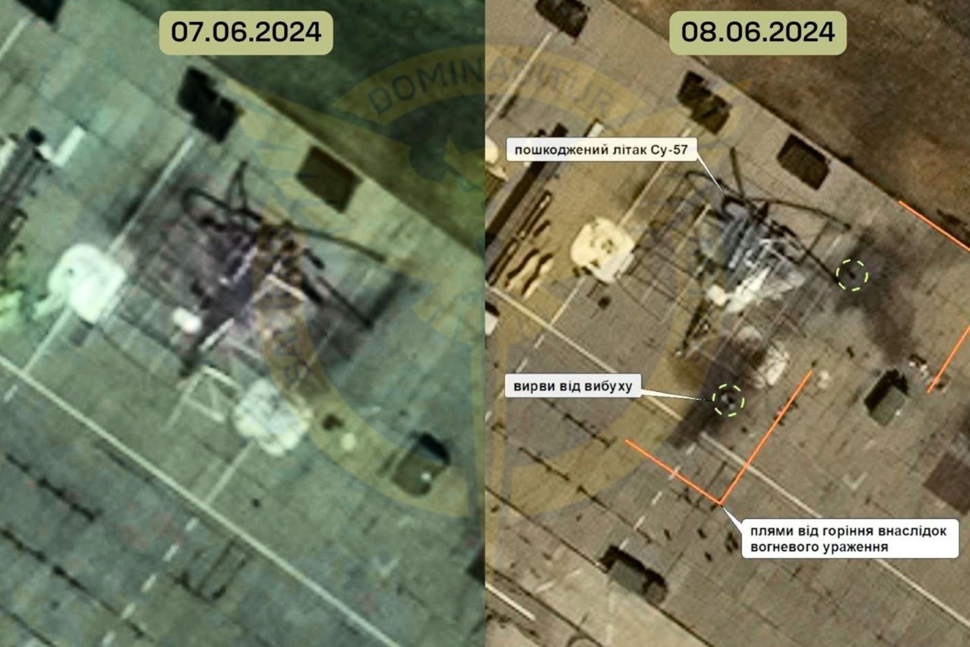 Ukraine says they destroyed a SU-57 durig a drone strike on the Akhtubinsk airfield in June 2024 (X/@Osinttechnical)