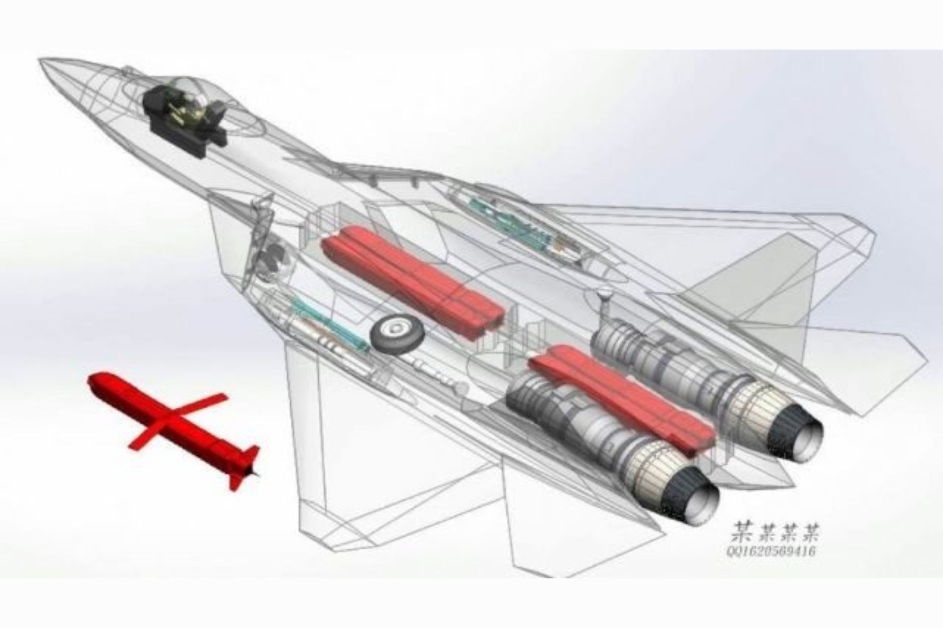 Internal storage of S-71 in SU-57. Even with 4 drones inside the plane external attach point are available for ammunition ( Picture source : Rospatent)