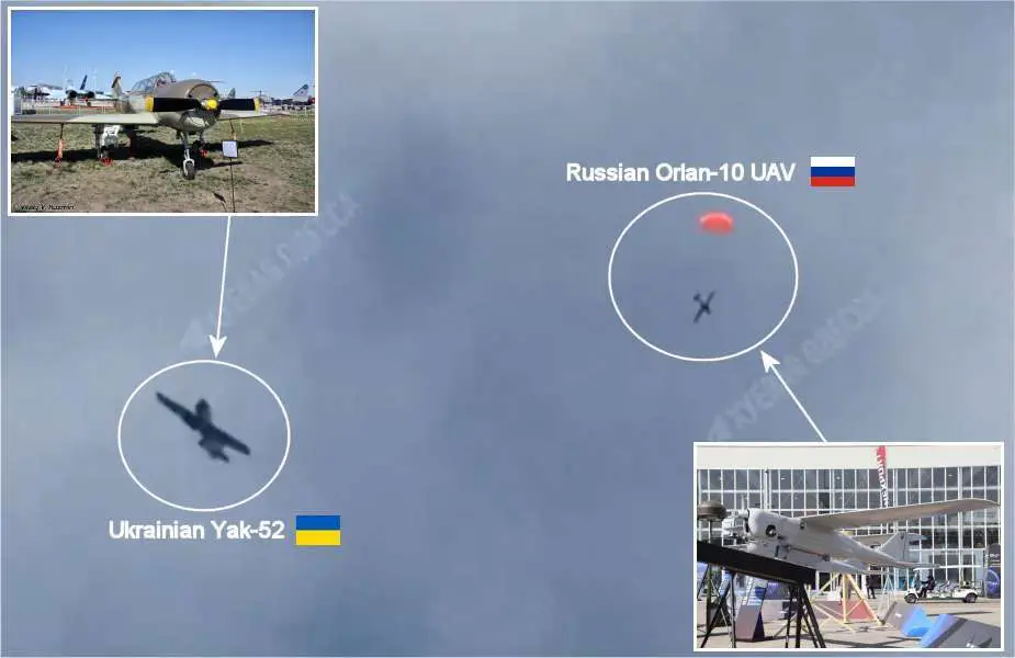 A Ukrainian Yak-52 training aircraft shoots down a Russian Orlan-10 drone. (Picture source: Vitaly V.Kuzmin / Army Recognition / Social Media)