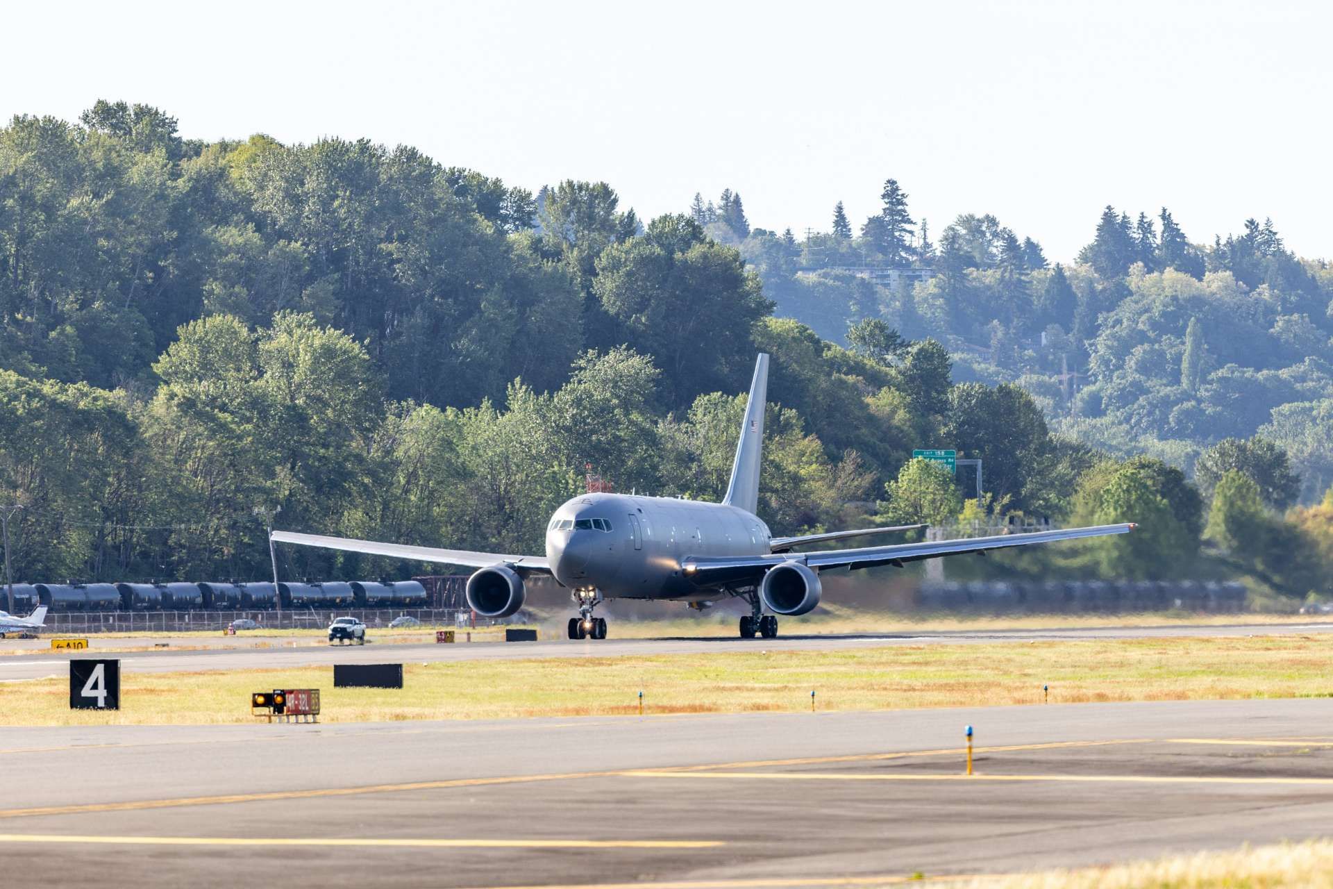 The KC-46 Pegasus is an aerial refueling and transport aircraft developed by Boeing Defense, Space & Security for the U.S. Air Force. It is derived from the Boeing KC-767 and made its first flight on September 25, 2015. Entering service in 2019, this aircraft is designed to provide in-flight refueling capabilities as well as cargo transport and aeromedical evacuation capabilities.