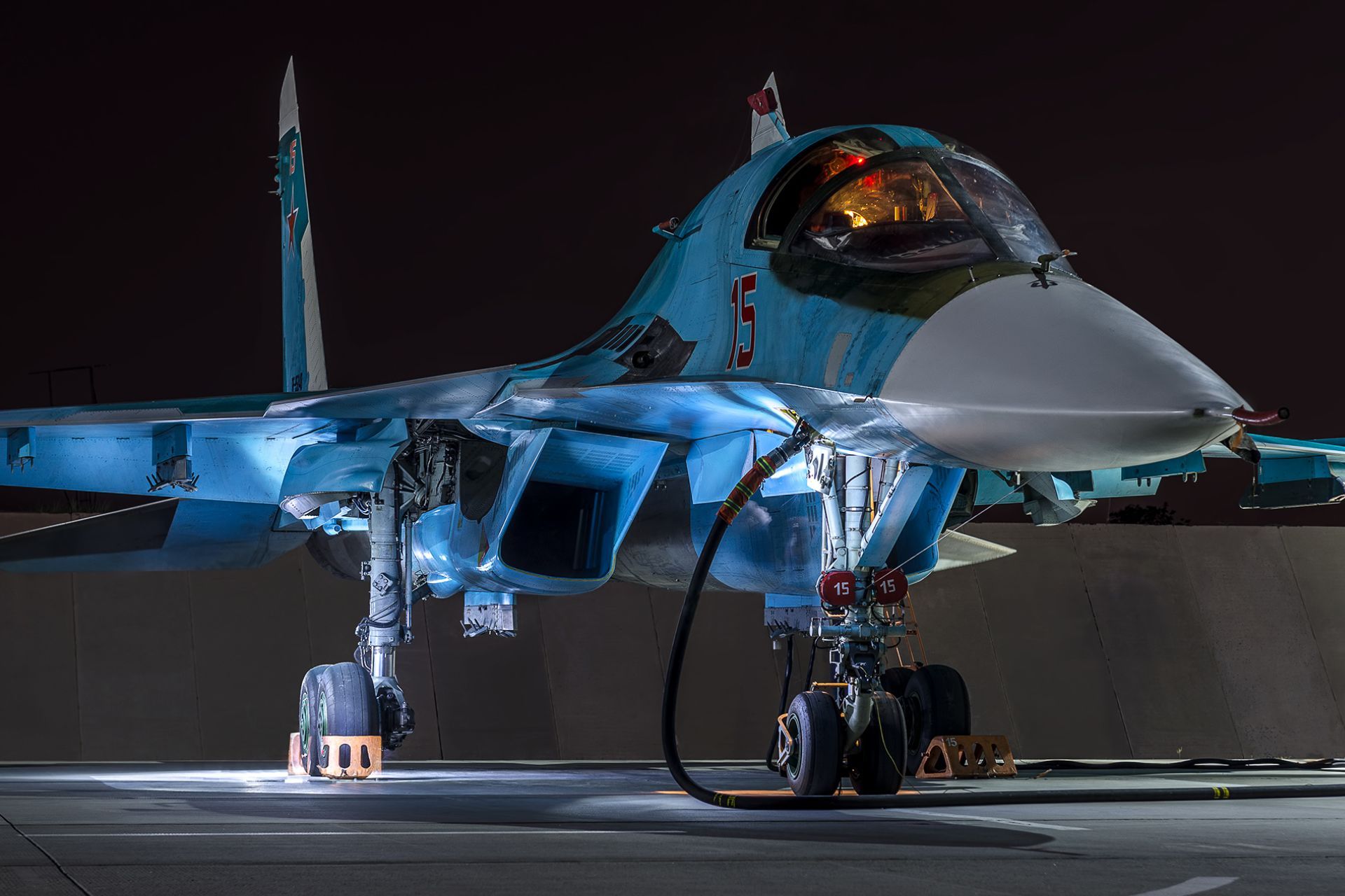 Nicknamed "Fullback" by NATO, the Su-34 is a twin-engine fighter-bomber with a two-person crew: a pilot and a weapons officer. The aircraft can operate in all weather conditions and conduct attack, bombing, and combat missions.