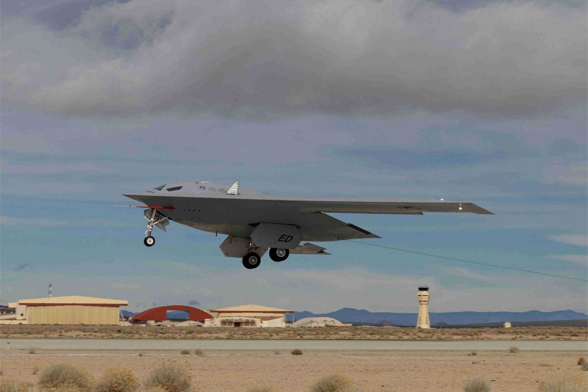 A B-21 Raider undergoes comprehensive flight testing—including ground evaluations, taxiing, and airborne operations—at Edwards Air Force Base, California, as it advances toward becoming the cornerstone of the U.S. Air Force's bomber fleet. (Picture source: U.S. DoD)