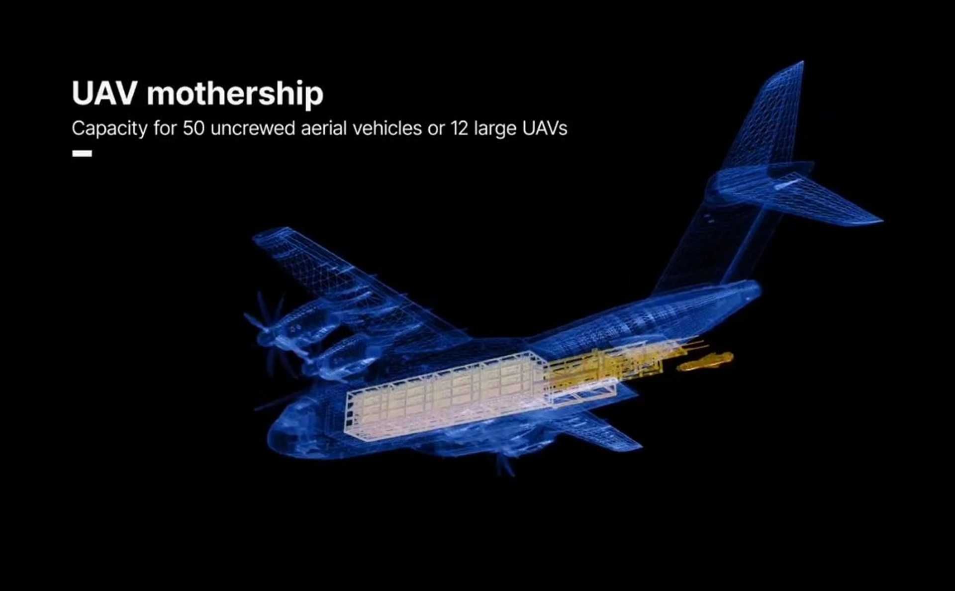 The mothership concept allows for the rearming, reprogramming, or updating of drones mid-mission, while retaining the A400M's high payload capacities and in-flight endurance. (Picture source: Airbus)