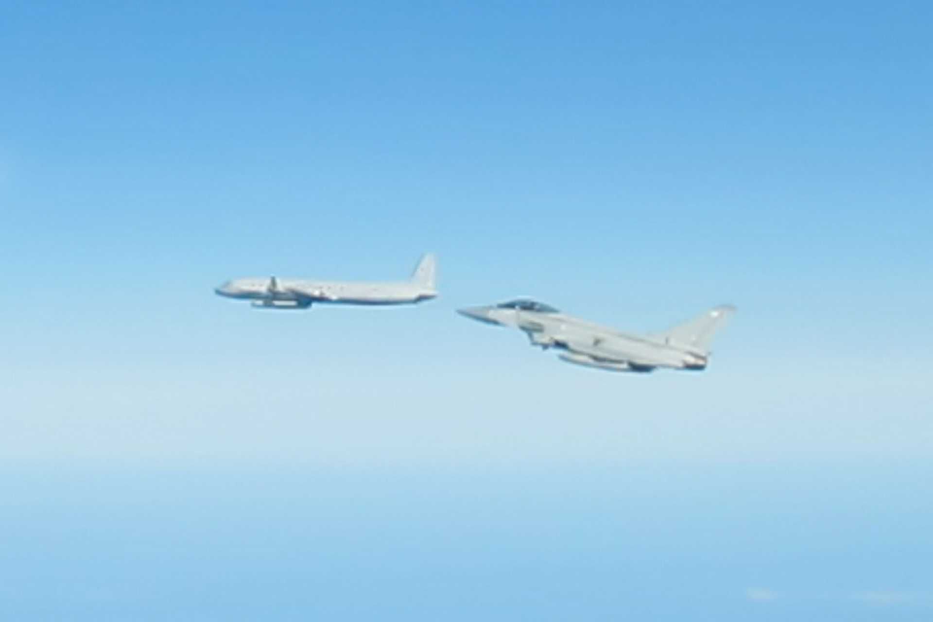 British RAF (Royal Air Force) Typhoon fighter jet intercepts Russian Ilyushin Il-20M near NATO airspace, a signals intelligence aircraft known by its NATO code name Coot-A. (Picture source: British Royal Air Force RAF)