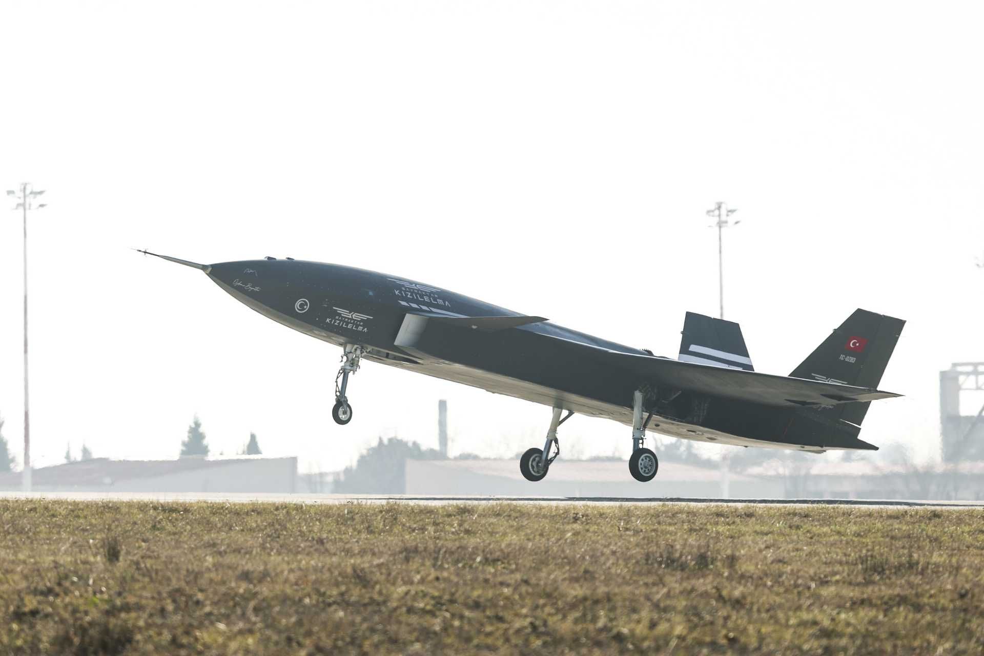 Bayraktar KIZILELMA unmanned fighter jet successfully completes a flight test at the AKINCI Flight Training and Test Center in Çorlu, Tekirdağ, showcasing its advanced capabilities and cutting-edge technology. (Picture source: Baykar)