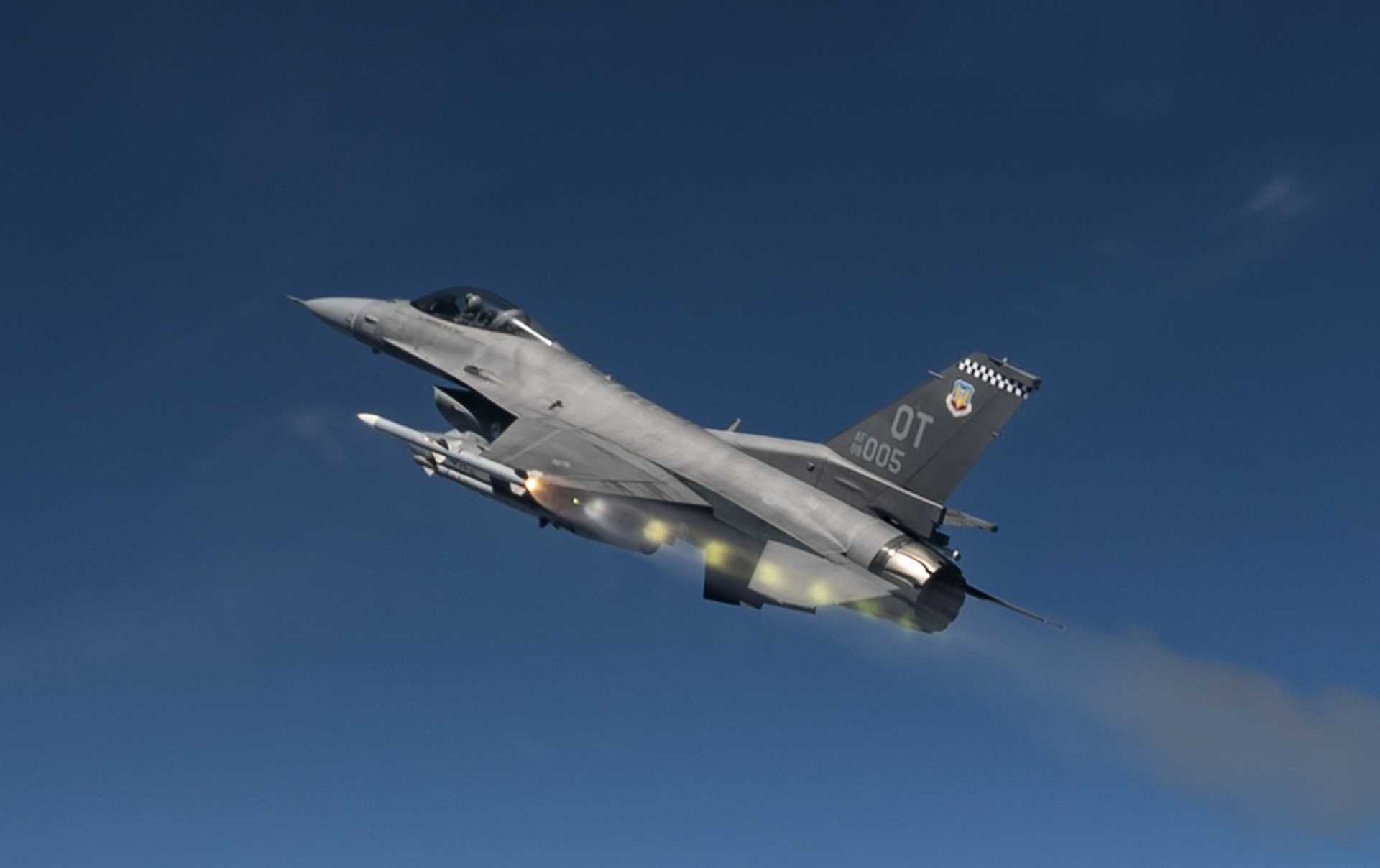 A U.S. Air Force F-16 fighter jet fires an AIM-120 AMRAAM medium-range air-to-air missile during a live-fire test. (Picture source: U.S. DoD)