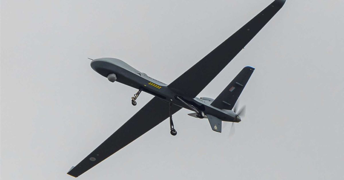 The British Royal Air Force Protector RG1 Remotely Piloted Air System (RPAS) undergoing flight testing at RAF Waddington, Lincolnshire, as part of Phase 3 of its test and evaluation programme. The advanced UAV is set to enhance the RAF’s intelligence, surveillance, and precision-strike capabilities. (Picture source: British Air Force)
