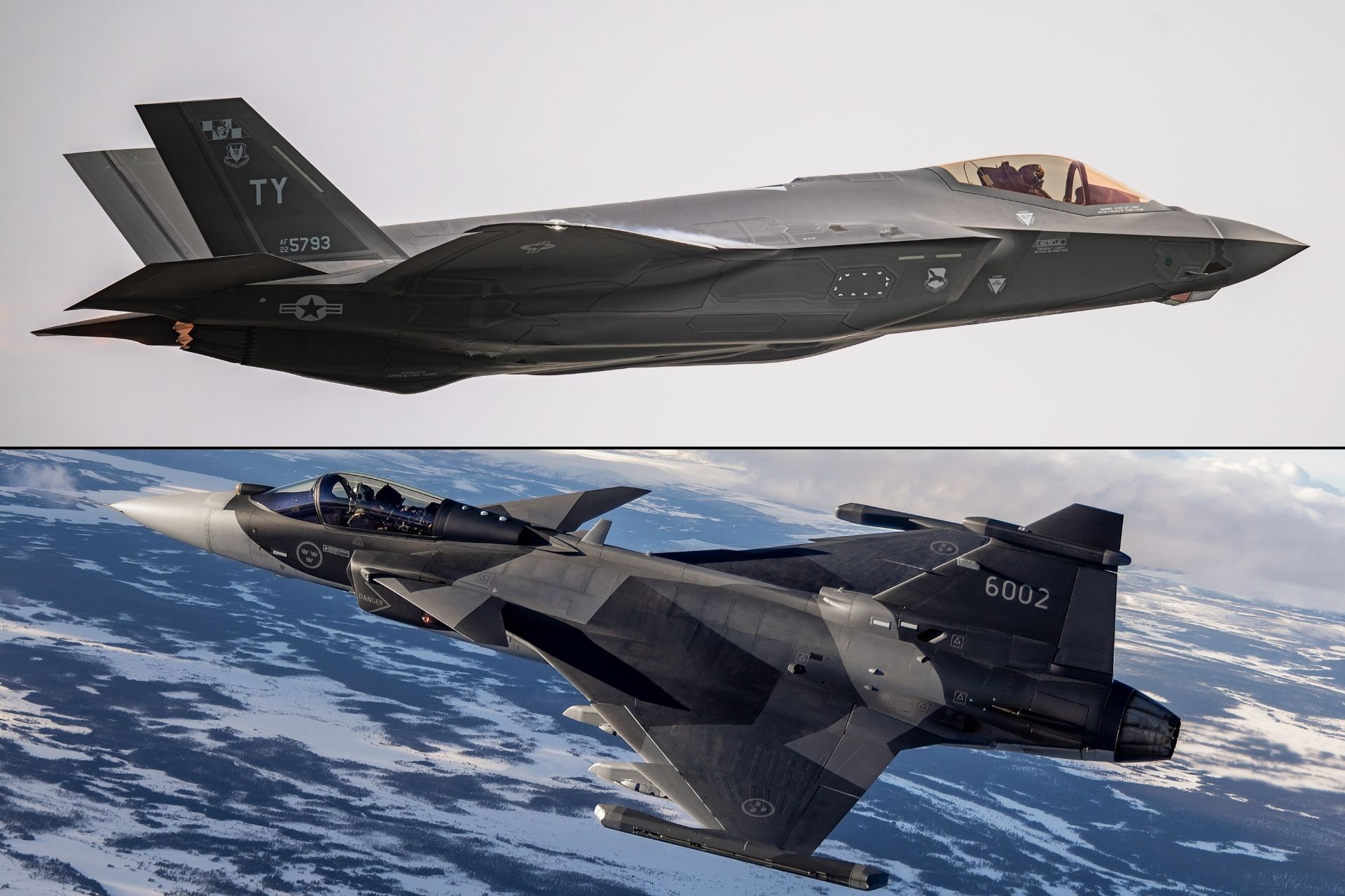 Top F-35A Lightning II, bottom JAS 39 Gripen E, the two fighters at the heart of Canada’s current debate. (Picture source: US DoD/Saab)
