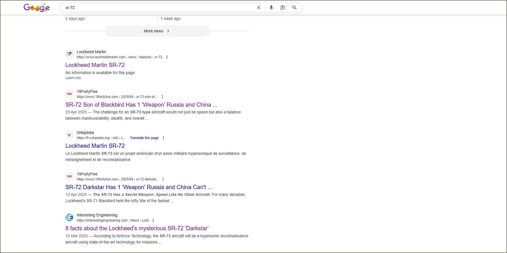 Lockheed Martin has created an SR-72-specific webpage that appears on Google with the message "no information is available for this page," suggesting metadata has been deliberately restricted to prevent visibility while preserving the page’s presence. (Picture source: Army Recognition)