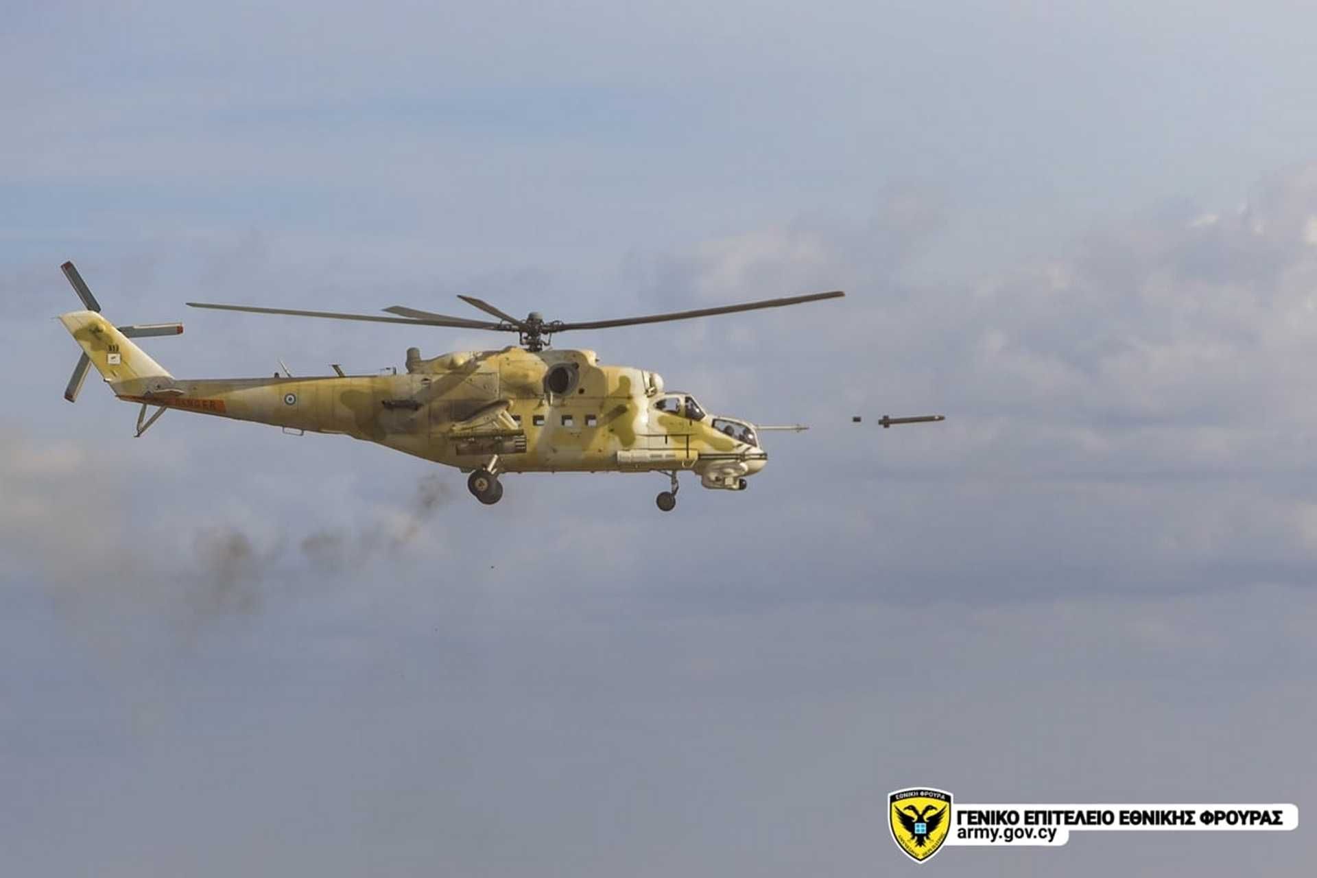 The Mi-35P's armament includes a 23mm cannon, up to 2,400 kg of weapons on six pylons, including anti-tank missiles, MANPADS, rocket pods of various calibers, gun pods, grenade launchers, and the capacity to carry bombs or mines. (Picture source: Cyprus National Guard)